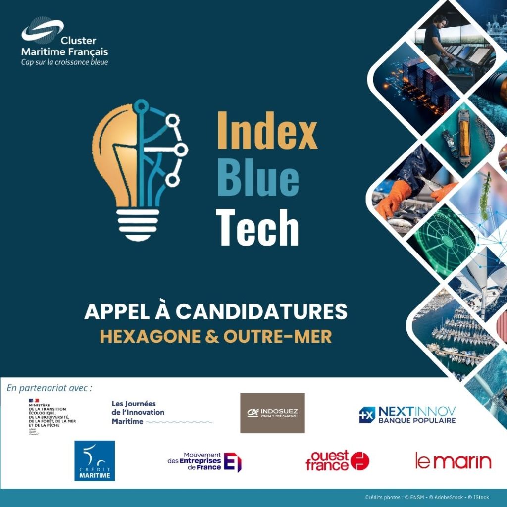 Le Cluster Maritime Français lance la 3ème édition du programme Index Blue Tech, dédié aux startups les plus innovantes de l’économie maritime, en hexagone et outre-mer. Cette initiative s’inscrit dans le cadre des Journées de l’Innovation Maritime du Ministère chargé de la mer, avec le soutien renouvelé d’Indosuez Wealth Management, partenaire historique, de NextInnov Banque Populaire, du Crédit Maritime, du Mouvement des Entreprises de France, de Ouest France – le marin. L’appel à candidatures est ouvert jusqu’au 6 novembre 23h59. Après examen des dossiers par un groupe d’experts représentatif du monde de l’innovation et des secteurs maritimes, cet Index sera dévoilé le 25 novembre à Paris lors d’un événement exceptionnel, rassemblant l’écosystème des startups et des organismes de financement.